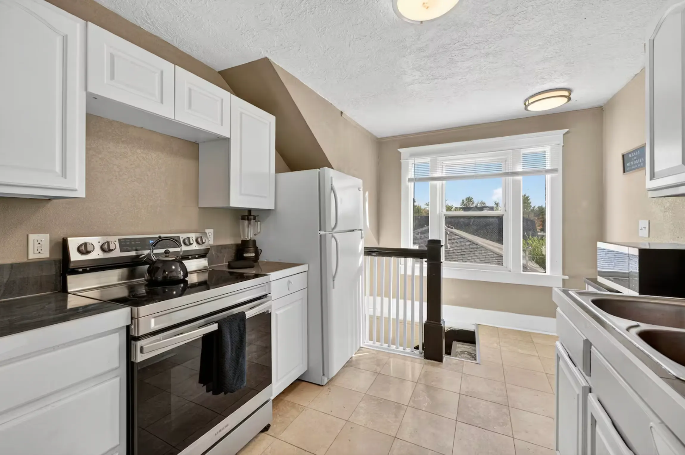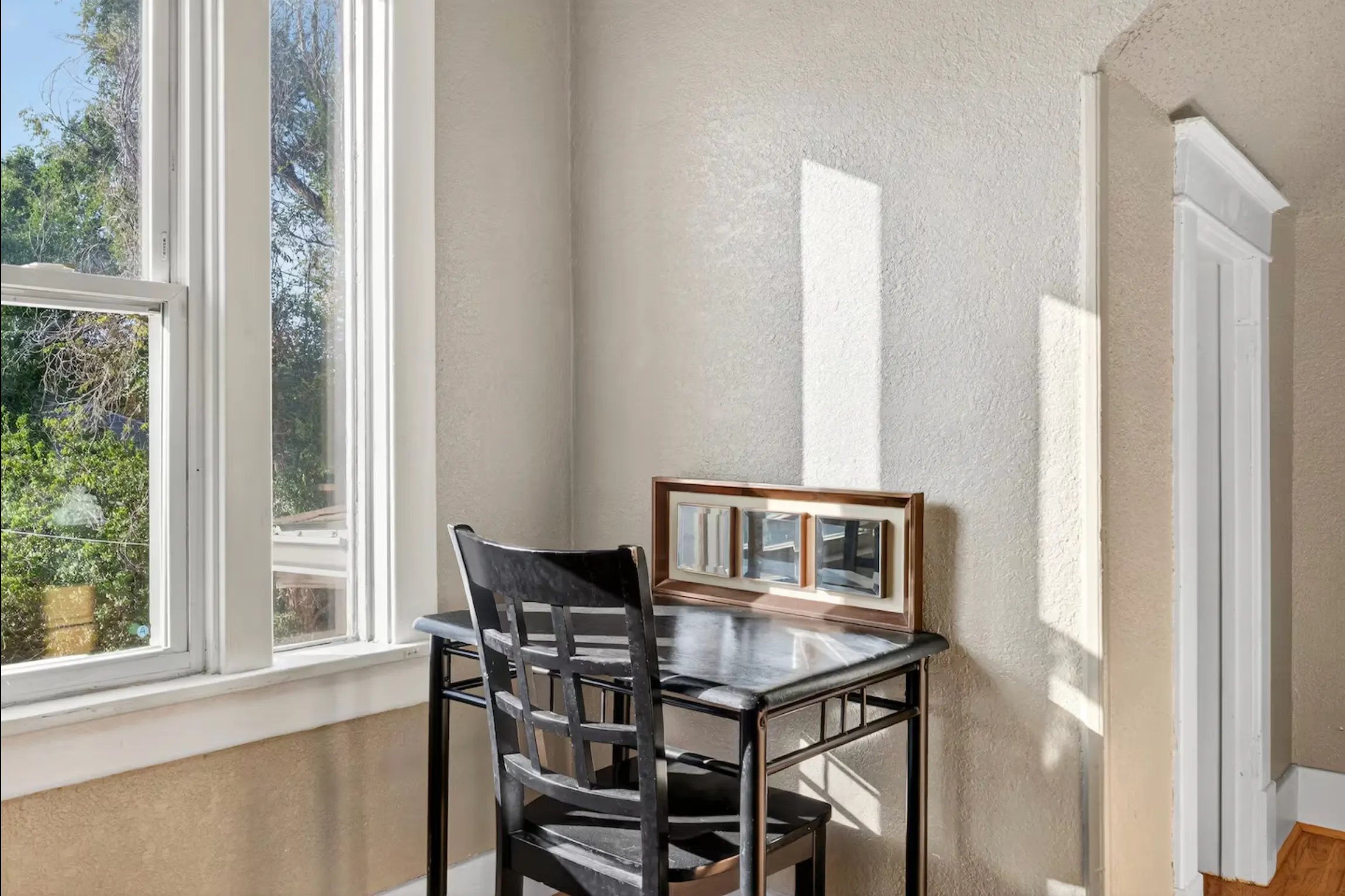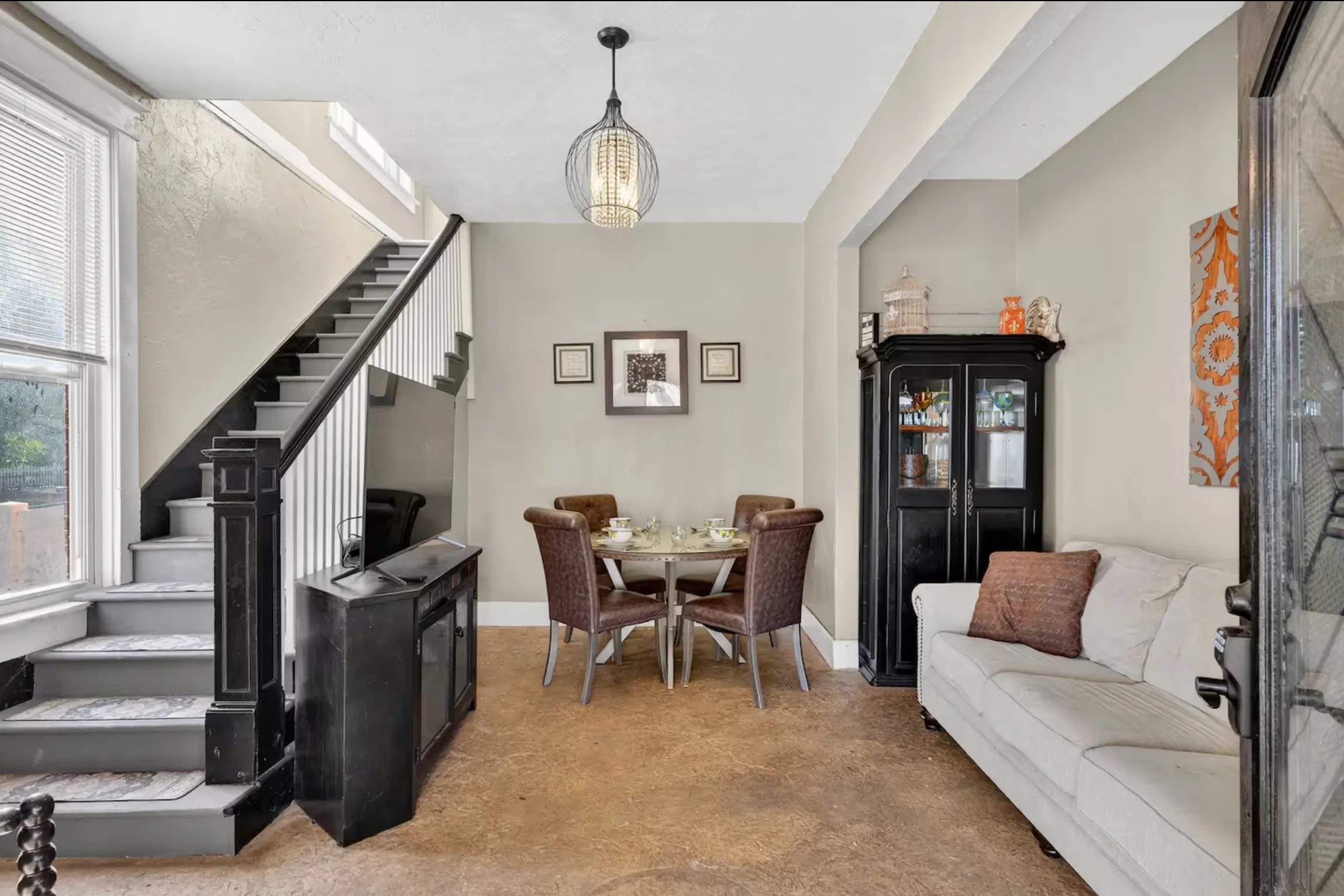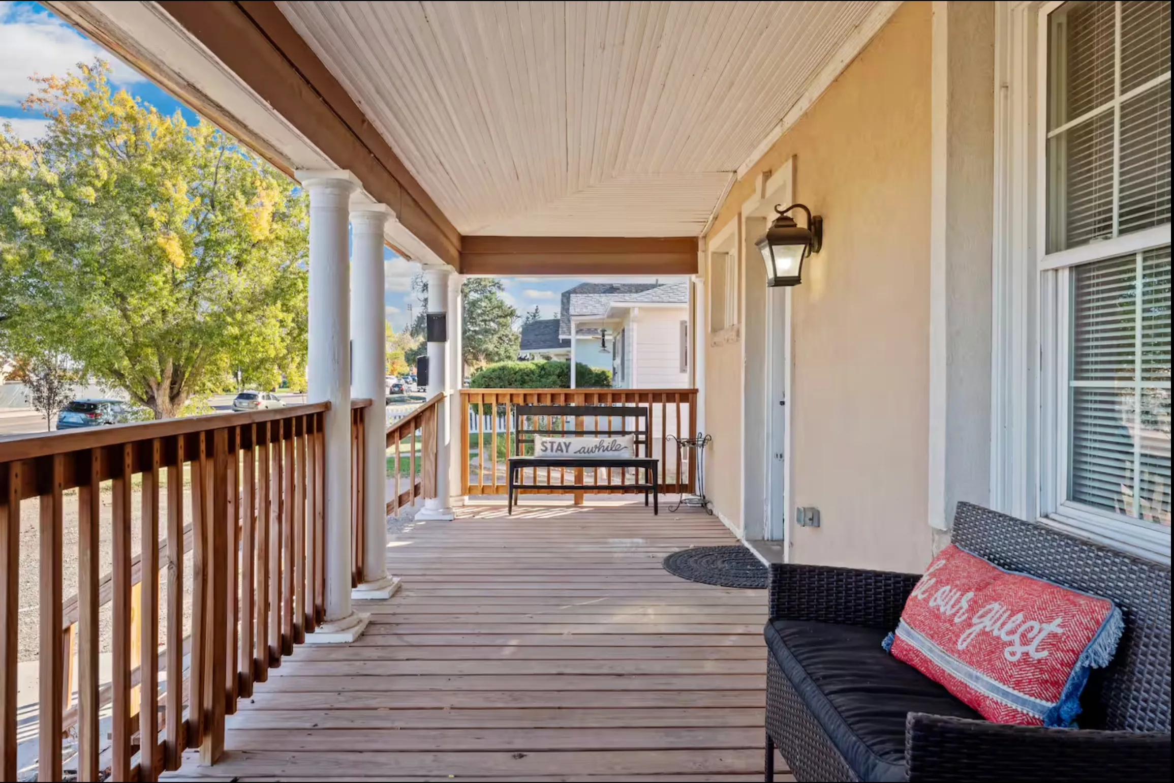 Up the stairs of this historic beauty, you enter the light and bright full kitchen, decorated with a fun lemon motif that inspires you to create delectable delights. Through the hallway, decorated with an art deco design, you will find three bedrooms, each with its own unique welcoming vibe.