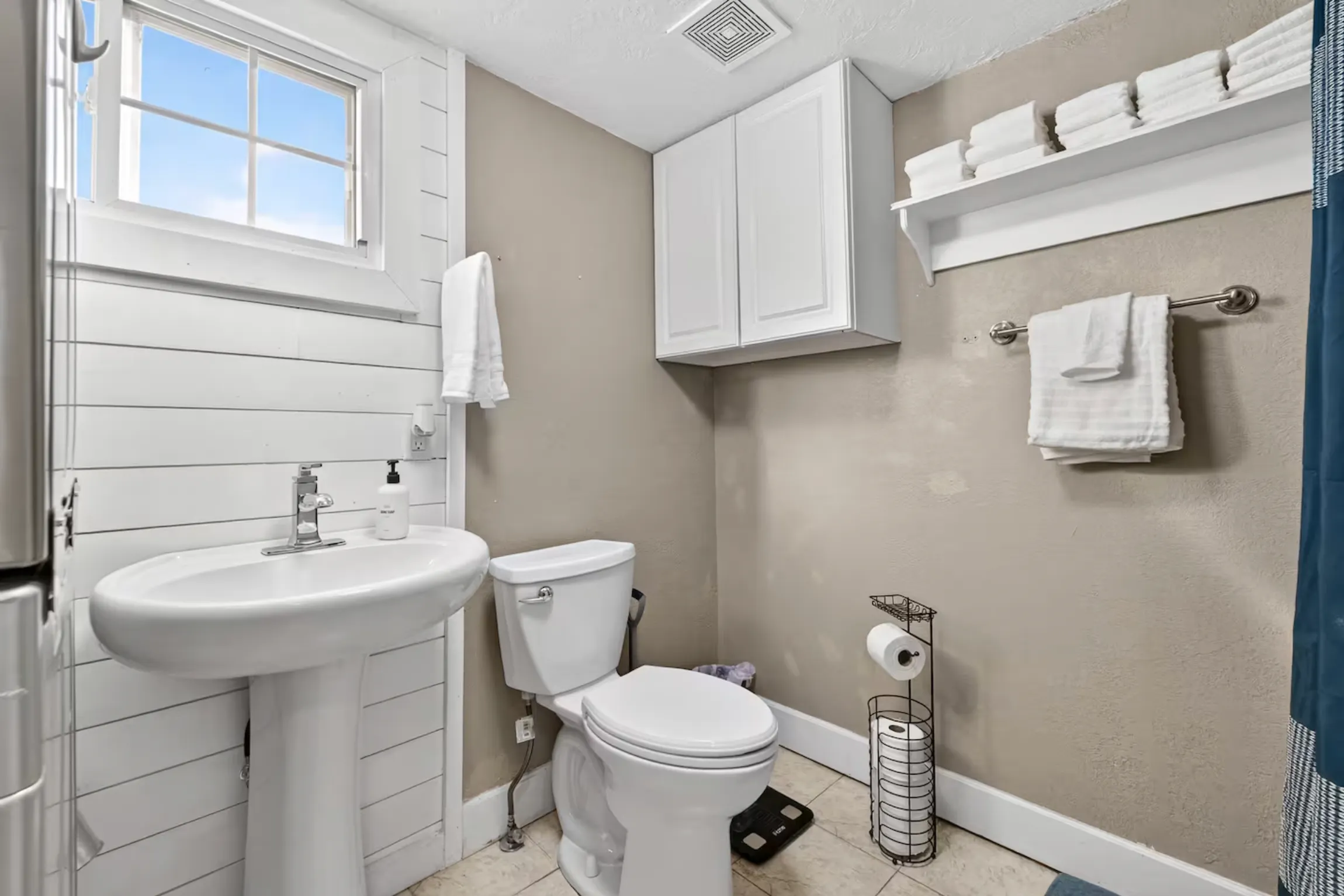 Down the hall, you will find a top-of-the line laundry center, with full size sanitizing washer and steam dryer. Sit back and unwind in your combo tub/shower. We've got you fully equipped with towels and toiletries, so you've got time for extra rest & relaxation!
